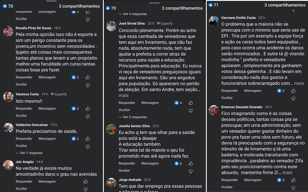 Esse episódio evidencia como as redes sociais se tornaram espaço de fiscalização popular: a comunidade usa sua voz para barrar projetos considerados nocivos e reafirmar valores de segurança e responsabilidade. Em Livramento, a mensagem é clara e direta: a pista de Grau não representa os interesses da população e qualquer tentativa de insistir nesse caminho será vista como um desastre político e social.