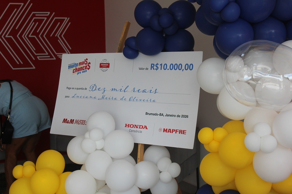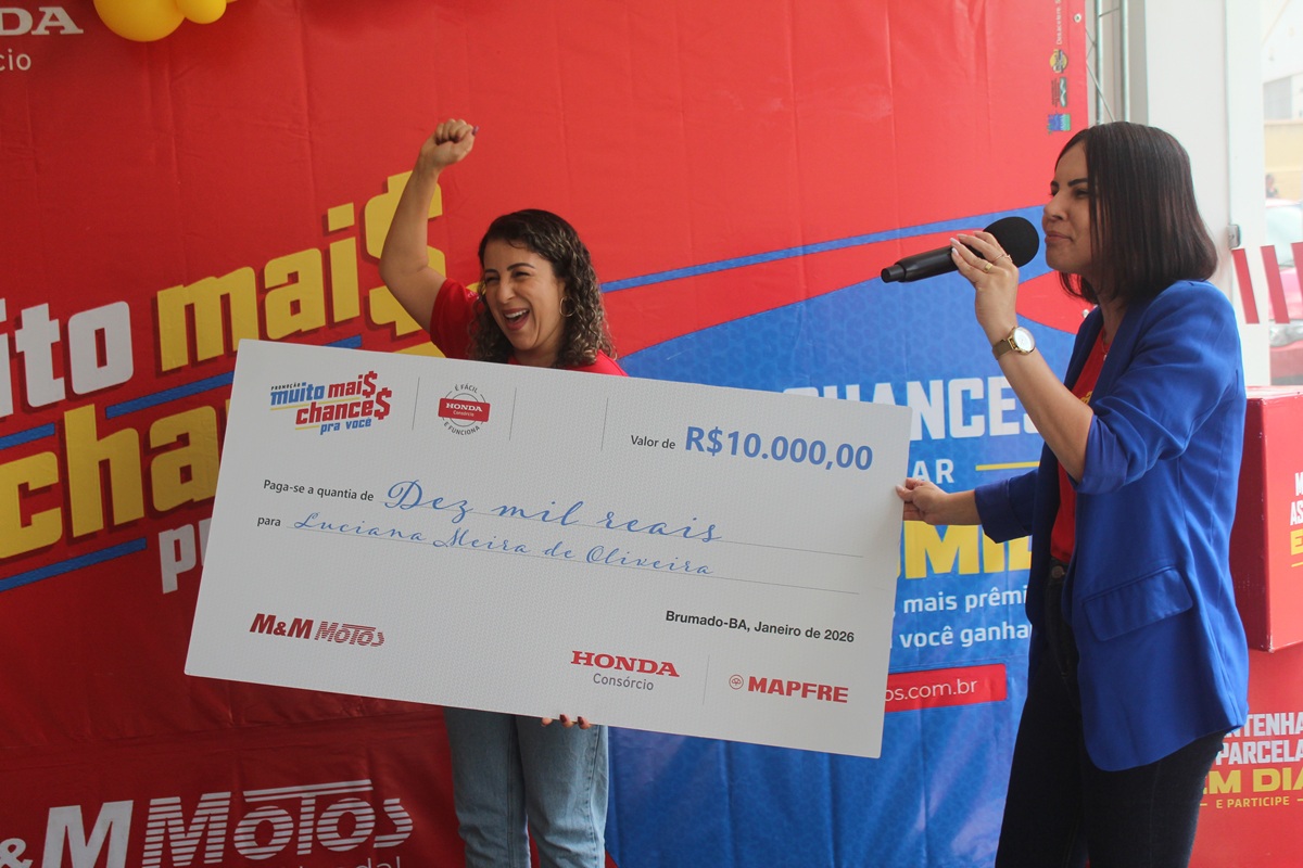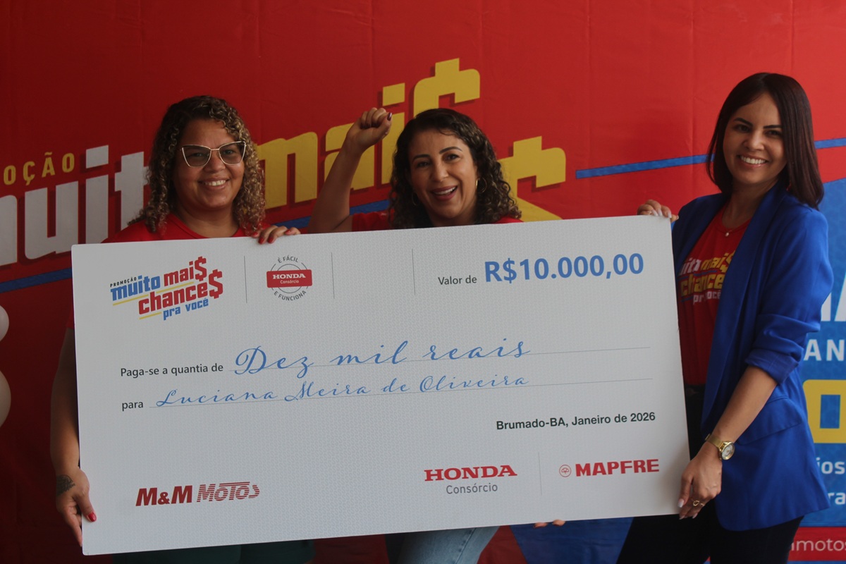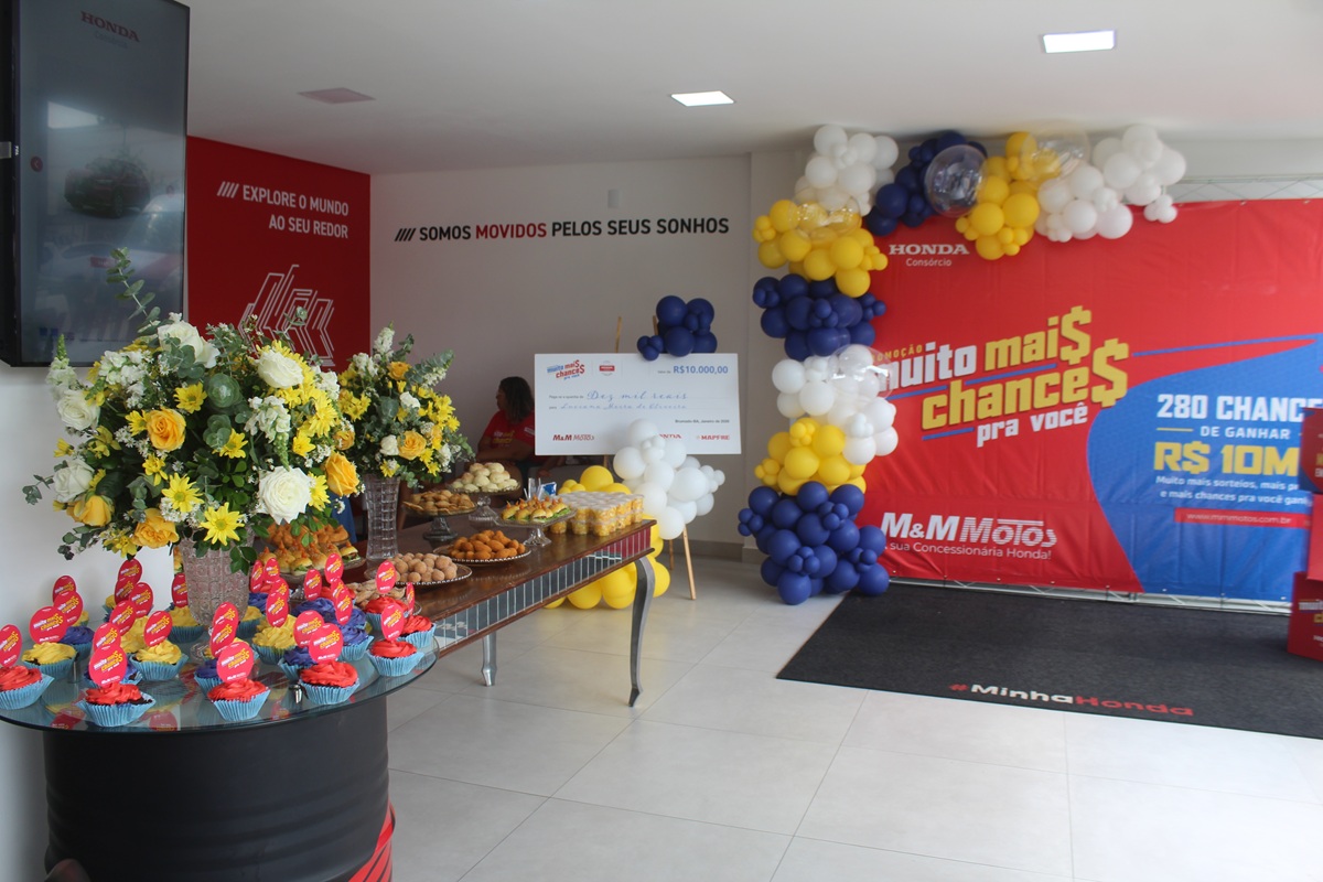 A concessionária M&M Motos Livramento, em Livramento de Nossa Senhora, celebrou a entrega de mais um prêmio da campanha “Muito Mais Chance Pra Você”, promovida pelo Consórcio Honda. Em um café da manhã especial, a cliente Luciana foi oficialmente contemplada com o valor de R$ 10 mil em uma conta poupança.