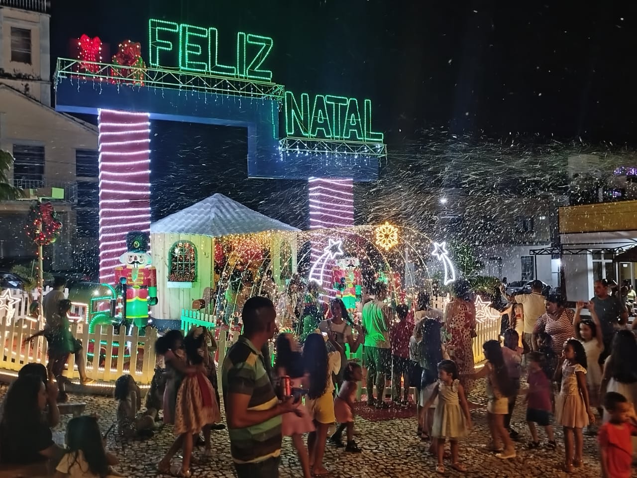 O momento mais marcante foi o acendimento das luzes, realizado em contagem regressiva. Logo depois, um show de fogos iluminou o céu e emocionou o público presente. As crianças aguardavam com expectativa a chegada do Papai Noel, que distribuiu sorrisos e acenos. A noite também contou com apresentações musicais, criando um ambiente festivo e acolhedor.